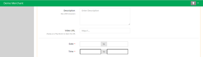 4. Enter date to start and date to end, as well as time to start and time to end the Campaign