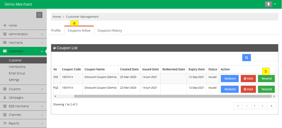 5. Click "Resend", the coupon will be send again to the customer's email.